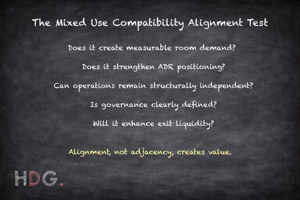 From a valuation perspective, compatible CRE must convert into sustainable NOI uplift. Mixed-use integration only enhances value if it strengthens stabilised occupancy, supports ADR growth, or reduces earnings volatility. If synergy does not translate into measurable income resilience, it does not translate into asset value.